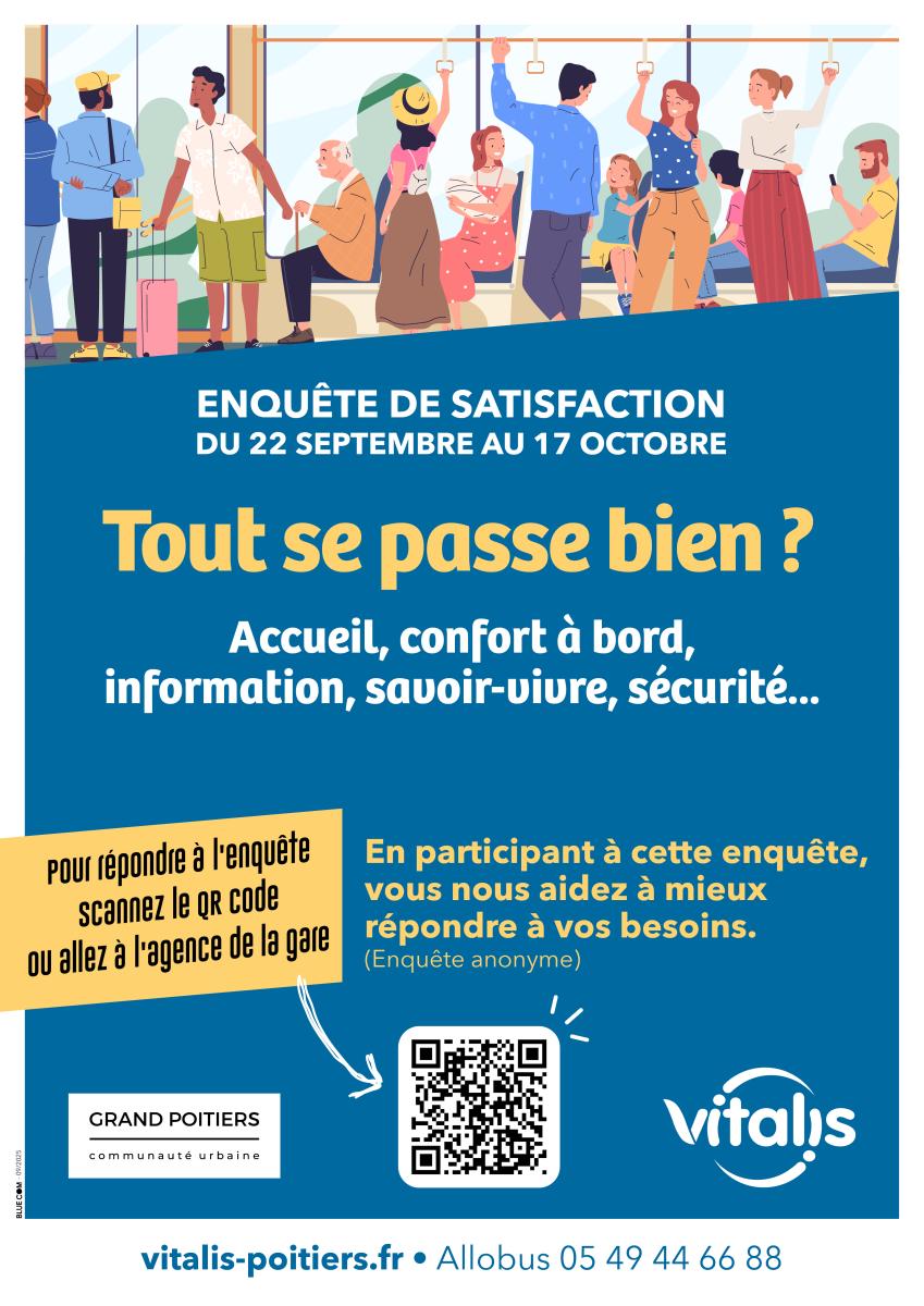 Ă partir du 22 septembre et jusquâau 17 octobre, les voyageurs sont invitĂ©s Ă rĂ©pondre Ă une enquĂȘte de satisfaction menĂ©e par Vitalis.