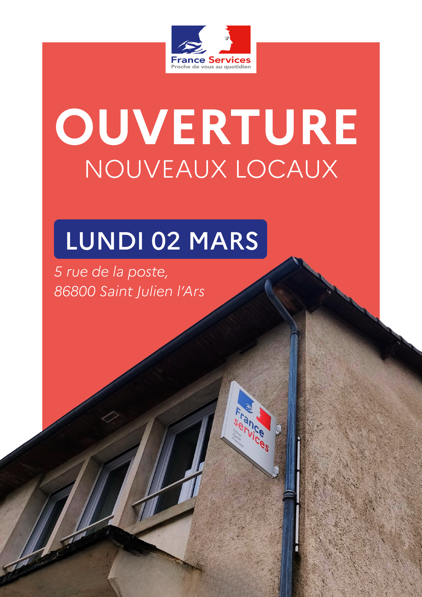 Le service France Services réouvre ses portes au 5 rue de la poste, à partir du lundi 02 mars 2026.